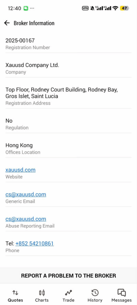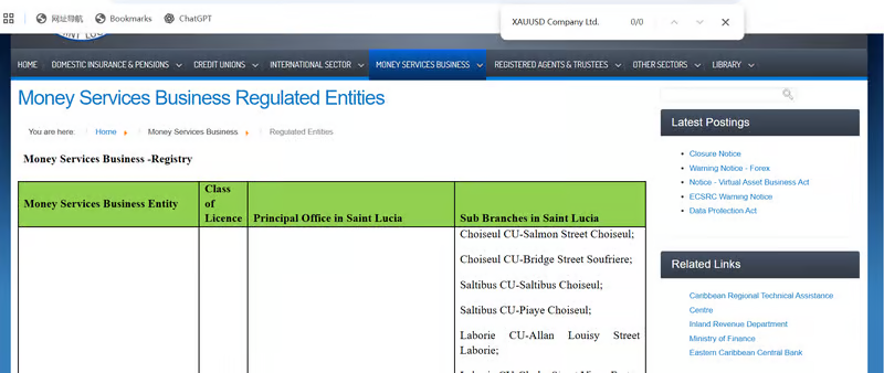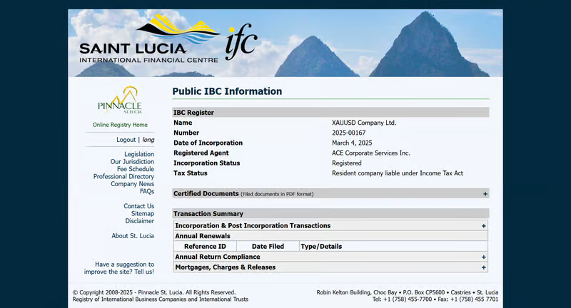 TraderKnowsの調査では、セントルシア国際商事会社・国際信託登録局(IFC)で「XAUUSD Company Ltd.」の登録記録が確認されました。