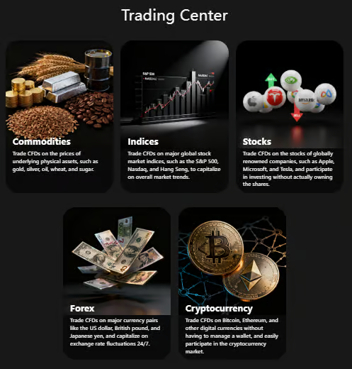 XAUUSDは以下のような取引商品を取り扱うと主張しています: