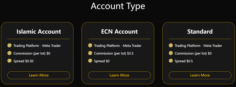 XAUUSDは3種類の口座を提供しています: