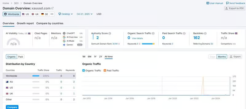 Semrushのデータによると、xauusd.comの月間平均アクセス数は約2件
